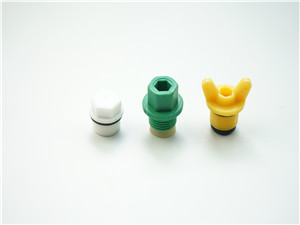 華彩塑膠采用全新PP-R原材料生產,模具設計合理,達到7個絲牙,膠墊全部采用三元乙丙橡膠,絕對保證和知名品牌管材、管件一樣壓力等級,質保25公斤壓力。適用于公元、中財、偉星、金牛等江浙、北方系列產品,使用在內牙管件設計有臺階的產品上,上述產品是堵頭頭部膠墊保壓,承諾25公斤。聯塑、雄塑、日豐廣東系產品內壓沒有設計臺階,是外膠墊保壓,用于這三個品牌不保證壓力。一小包100個,一件50包。