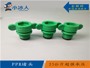采用全新PP-R原材料生產,模具設計合理,達到7個絲牙,膠墊全部采用三元乙丙橡膠,絕對保證和知名品牌管材、管件一樣壓力等級,質保25公斤壓力。適用于公元、中財、偉星、金牛等江浙、北方系列產品,使用在內牙設計有臺階產品,上述產品是堵頭頭部膠墊保壓,承諾25公斤。聯塑、雄塑、日豐廣東系產品內壓沒有設計臺階,是外膠墊保壓,用于這三個品牌不保證壓力。一小包100個,一件30包。